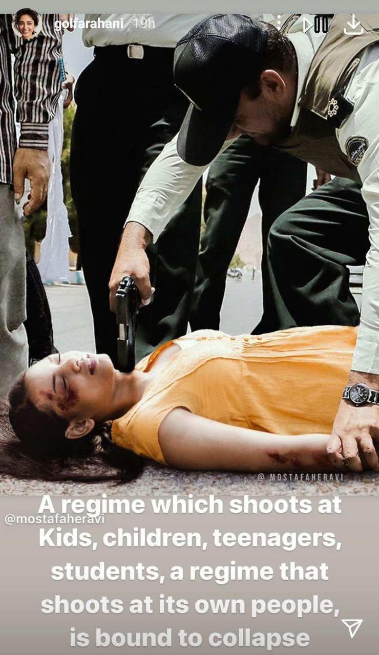 به گزارش ١٩ آبان ؛گلشیفته فراهانی این عکس فیک رو استوری کرده!!!