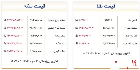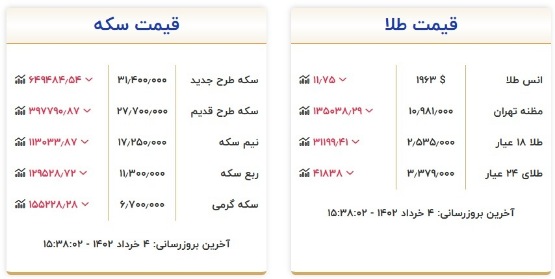 قیمت طلا و سکه، امروز ۴ خرداد ۱۴۰۲