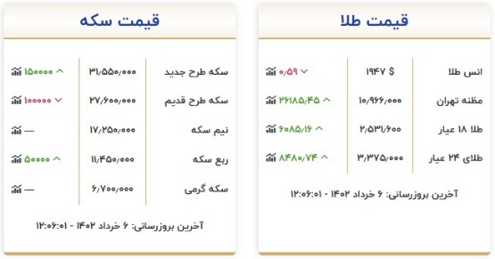 قیمت طلا و سکه، امروز ۶ خرداد ۱۴۰۲