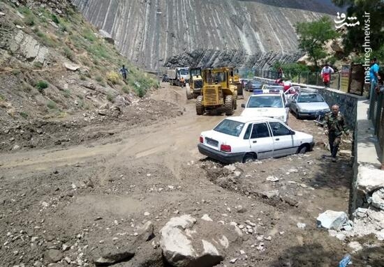 پس از بارندگیهای شدید در جاده چالوس بخشهای متعددی از این جاده با ریزش سنگین کوه و جاری شدن سیل مواجه شد.