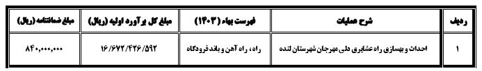 اداره کل امورعشایر استان کهگیلویه و بویراحمد در نظر دارد پروژه زیر را بین شرکتهای واجد شرایط دارای رتبه راه به صورت مناقصه عمومی یک مرحله ای به مناقصه بگذارد در صورتیکه حاضر به انجام پروژه می باشید با توجه به مشخصات و بازدید از محل پروژه و همچنین شرایط عمومی پیمان قیمت پیشنهادی خود را حداکثر تا آخر وقت اداری روز چهارشنبه۲۶/۰۲/۱۴۰۳ در سامانه مناقصات (www.setadiran.ir) ثبت نمایند.
